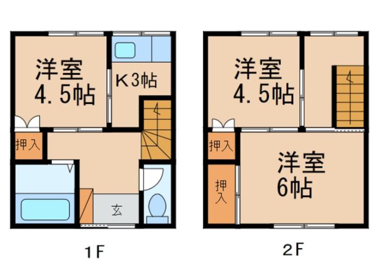 3K(1階 K3、洋室4.5 2階洋室4.5 洋室6) |