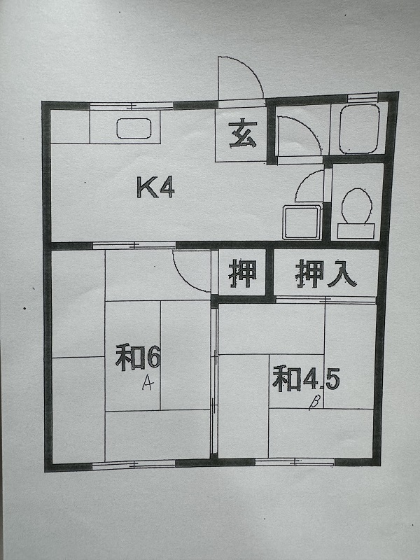 2K 和室6畳、和室4.5畳、キッチン4畳 |