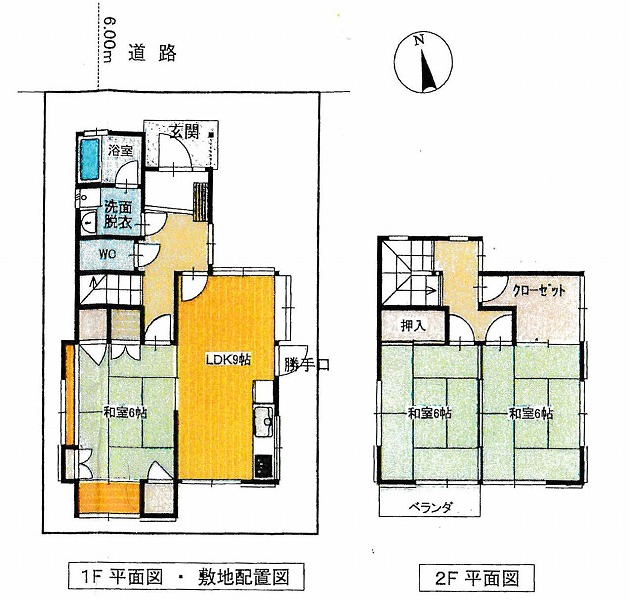 3LDK (1階:和室 6畳 LDK 9畳 2階:和室6畳 和室6畳 CL) |