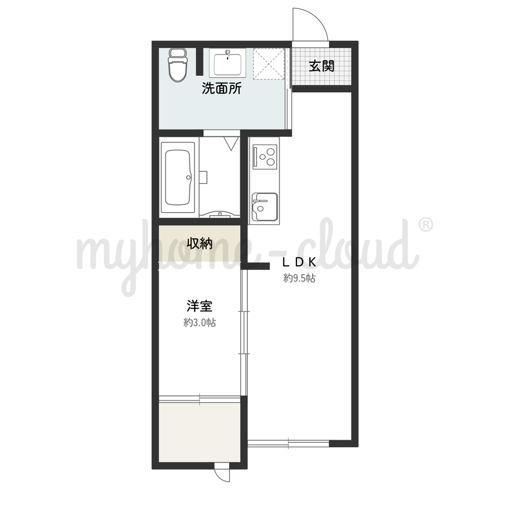 1LDK(LDK9.5帖・洋3帖・サンルーム) |