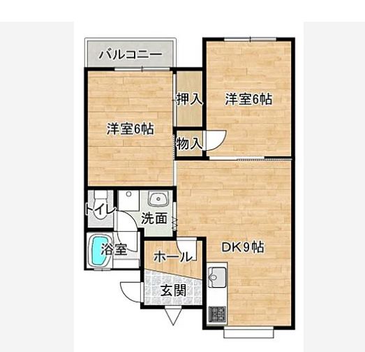 2DK ( ダイニングキッチン 9帖 和室 6畳 洋室 6.5帖 ) |